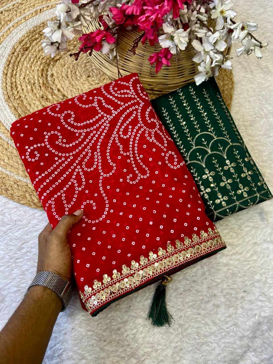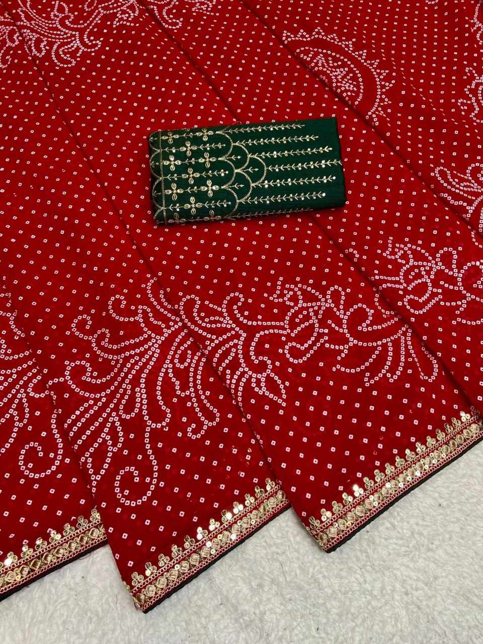 Home / RC Red Bandhej Georgette heavy Coding Sequence border Saree