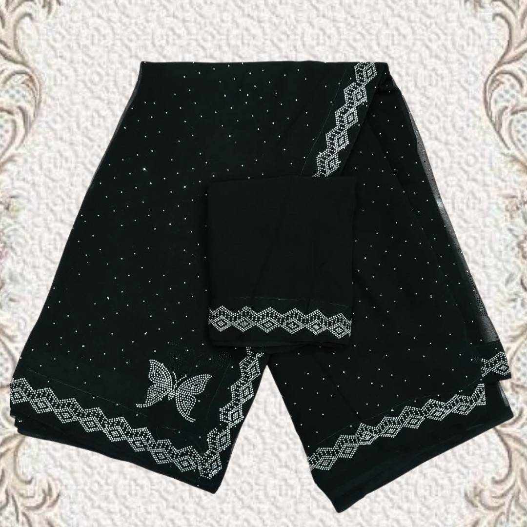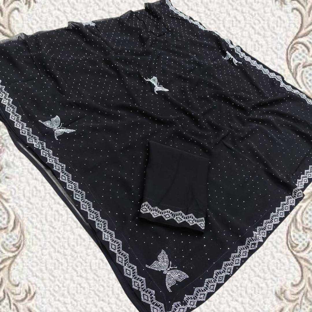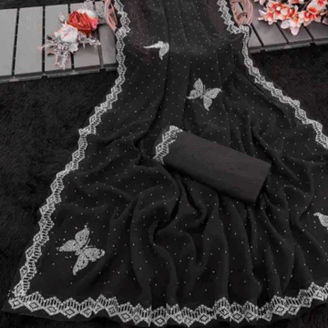 Home / S4s Black Siroski Butterfly Stones Lace Georgette Party Wear Saree