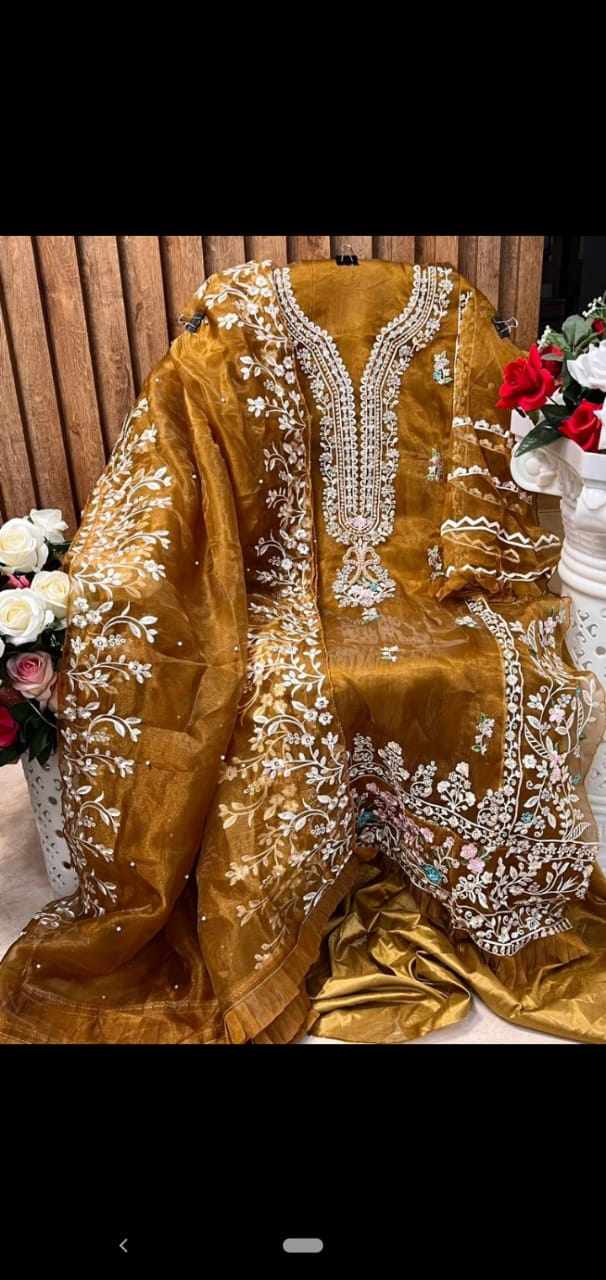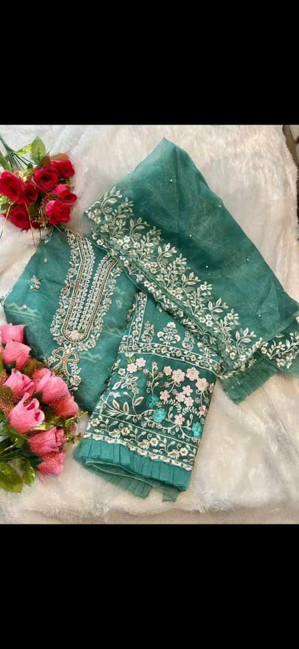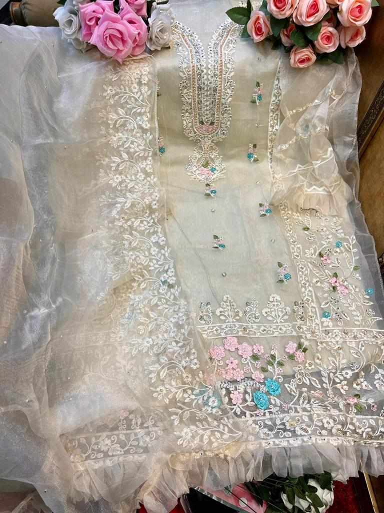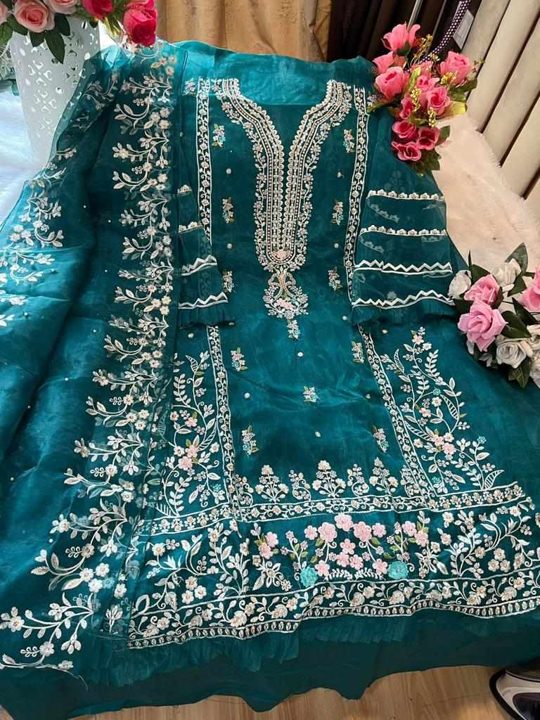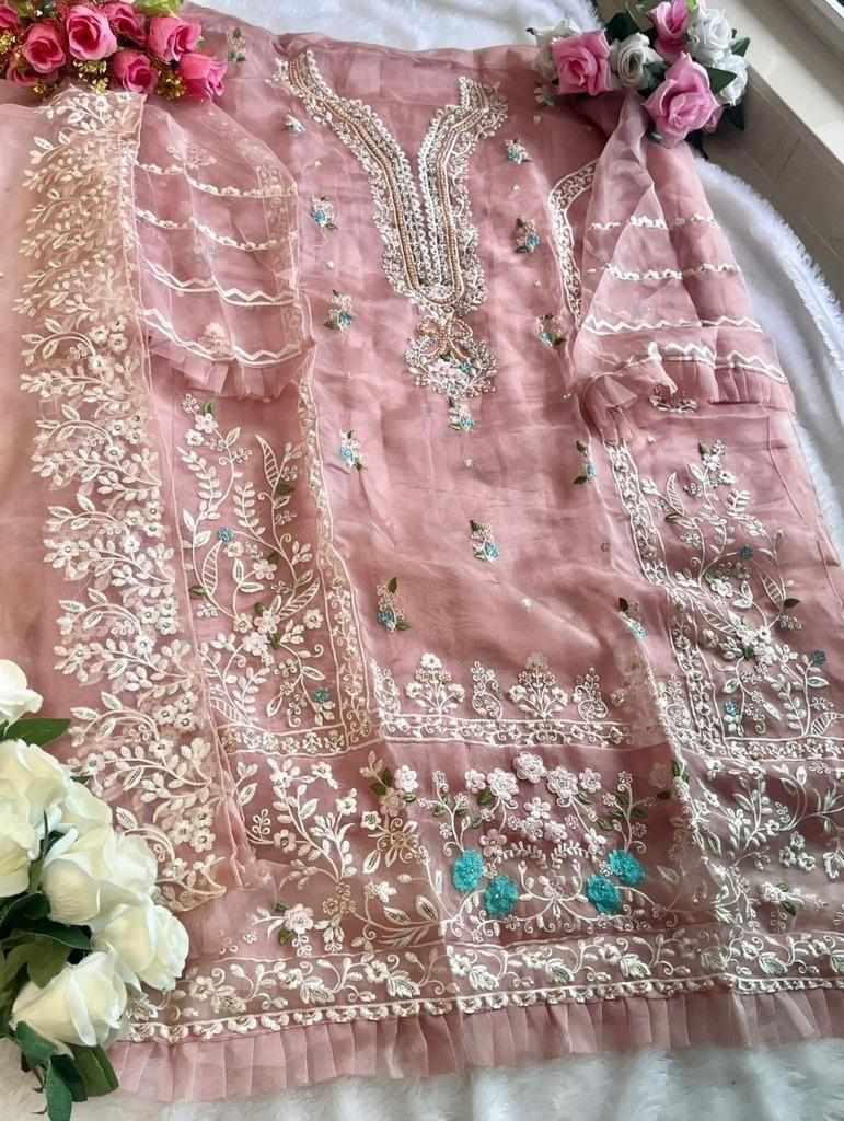 Top:- SEMISTICHED ORGANZA EMBROIDERED Handwork