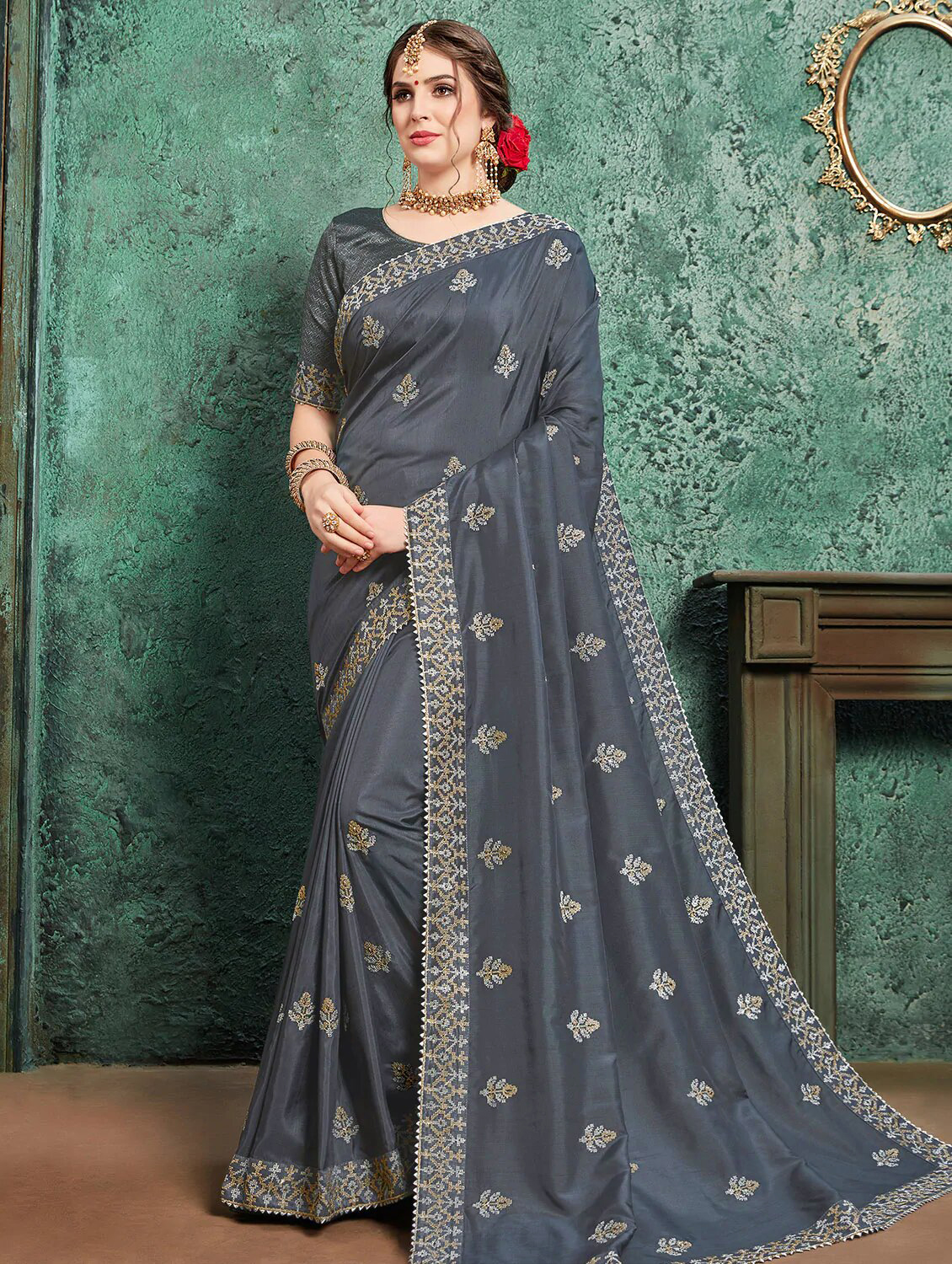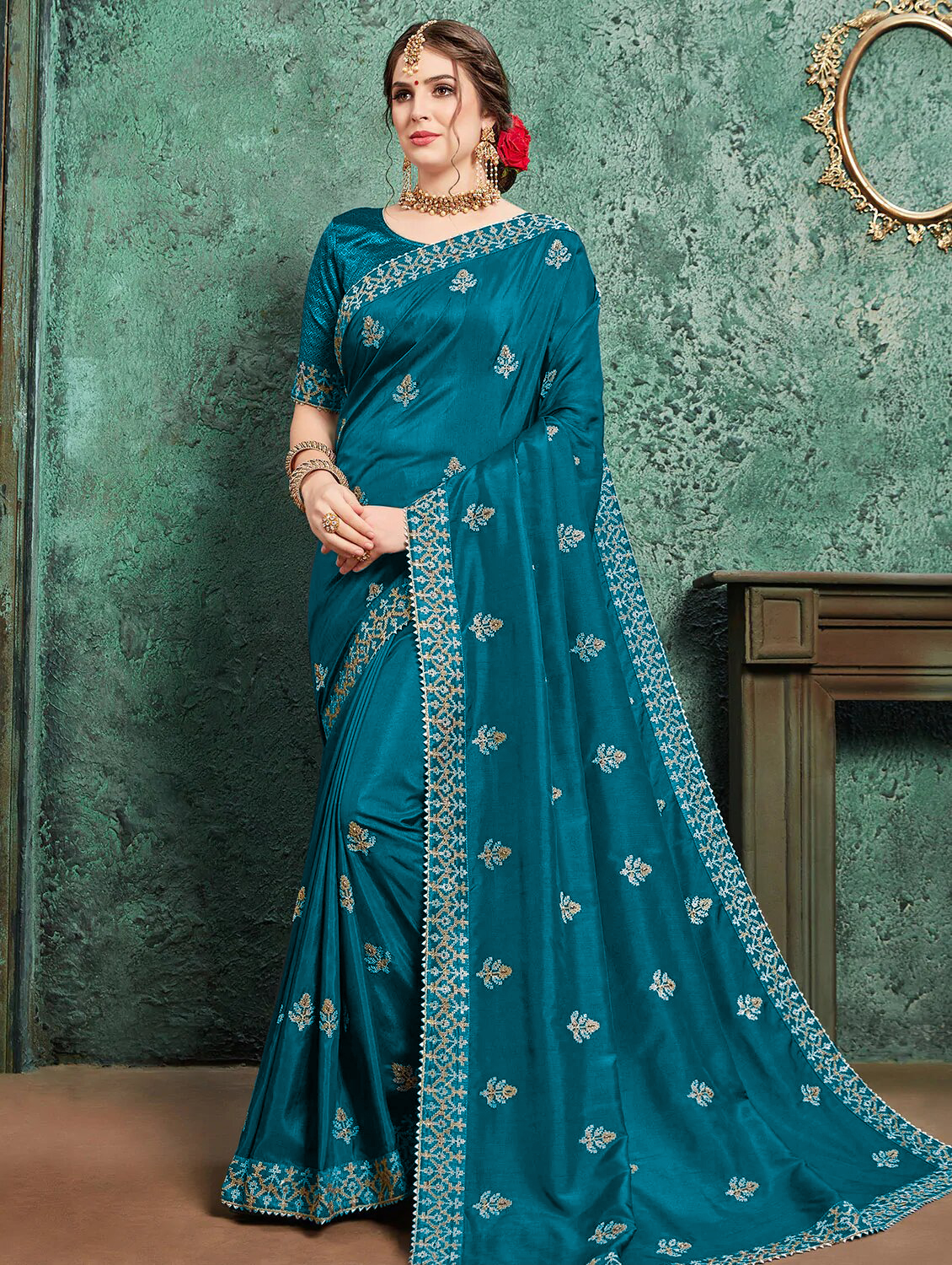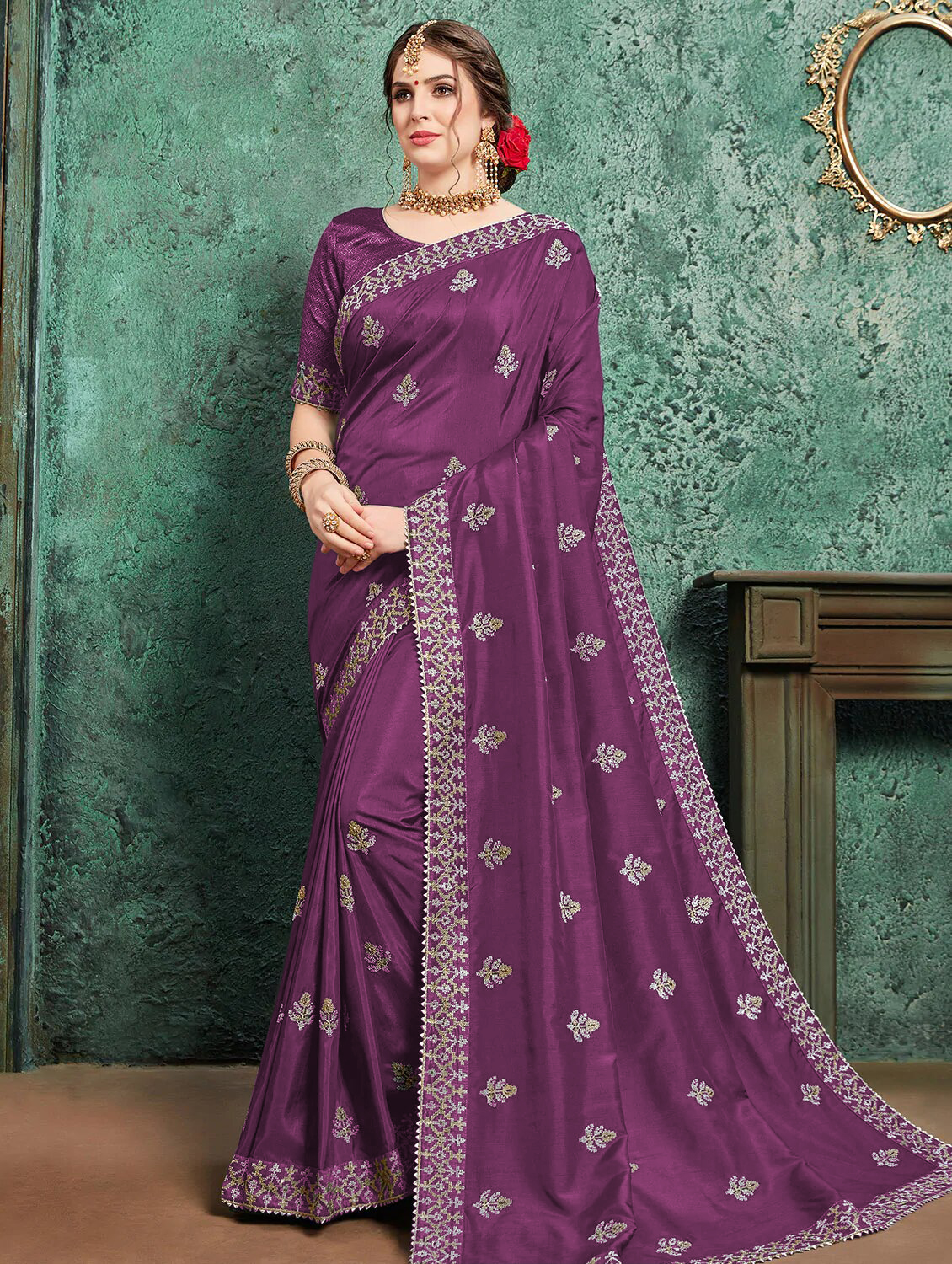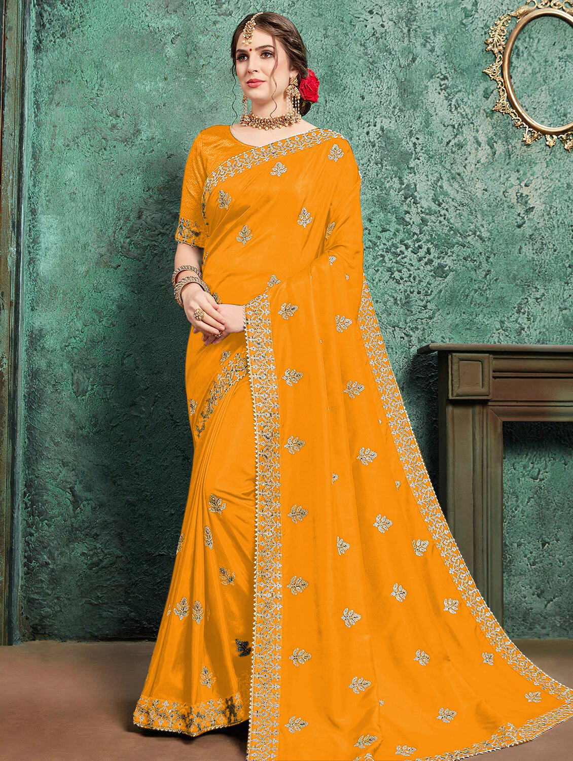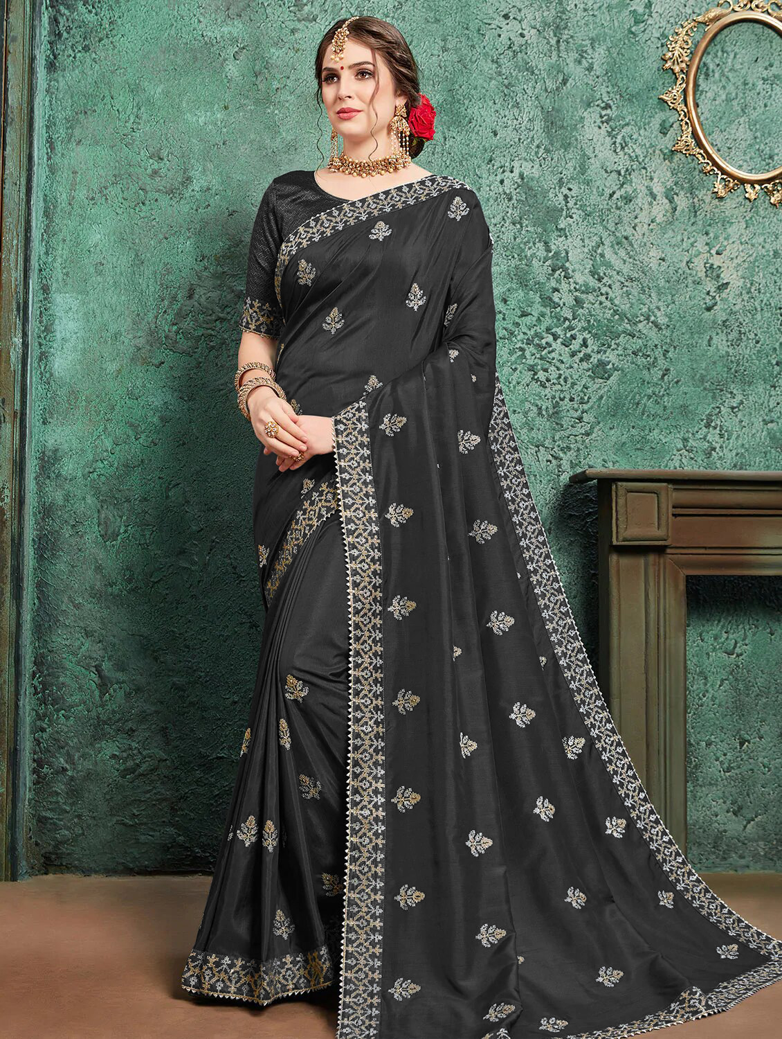 Home / Latest Embroidery Silk Saree with Unstiched Blouse Peice