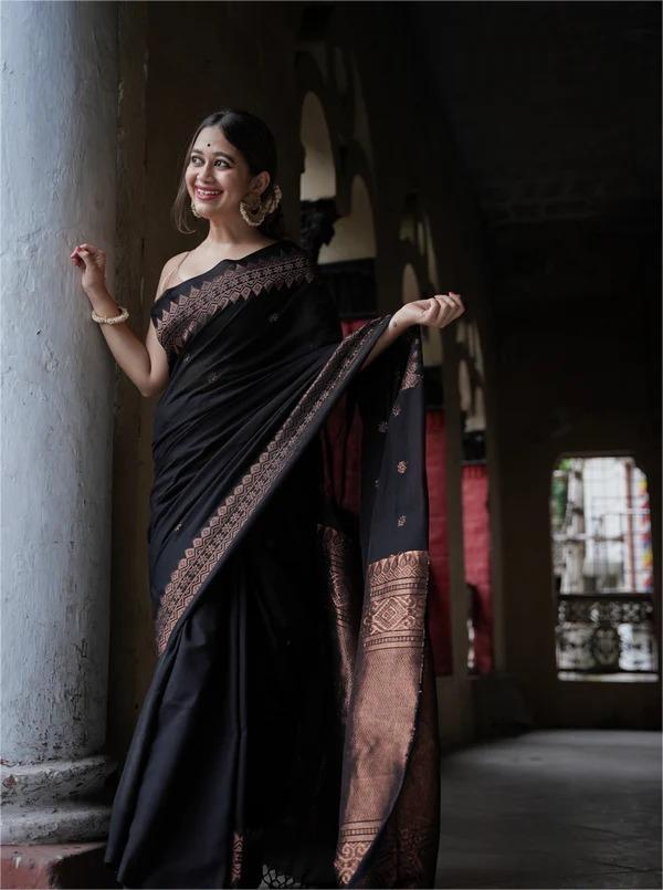 Home / MF 1950 BLACK BANARASI SOFT LICHI SILK SAREE