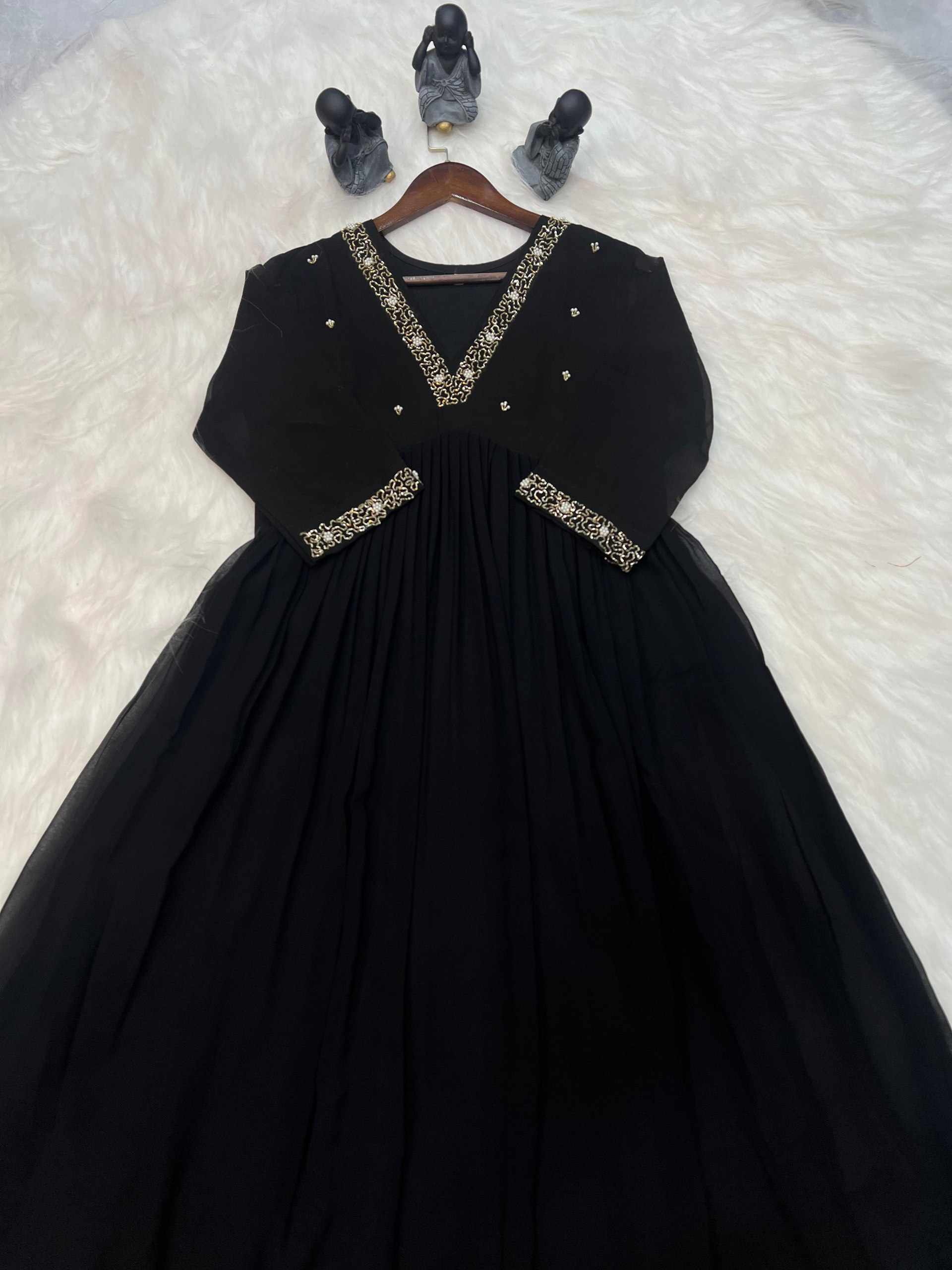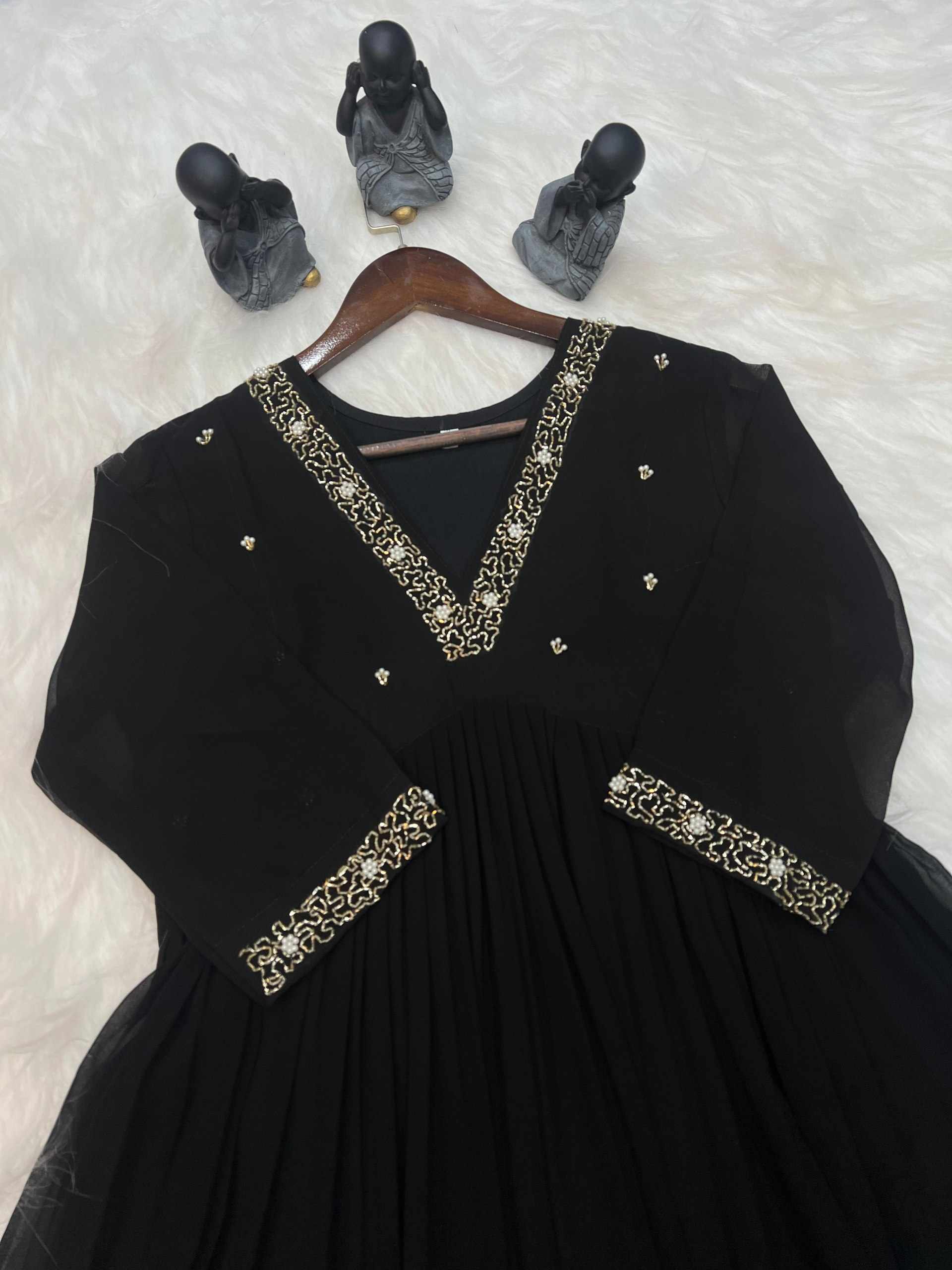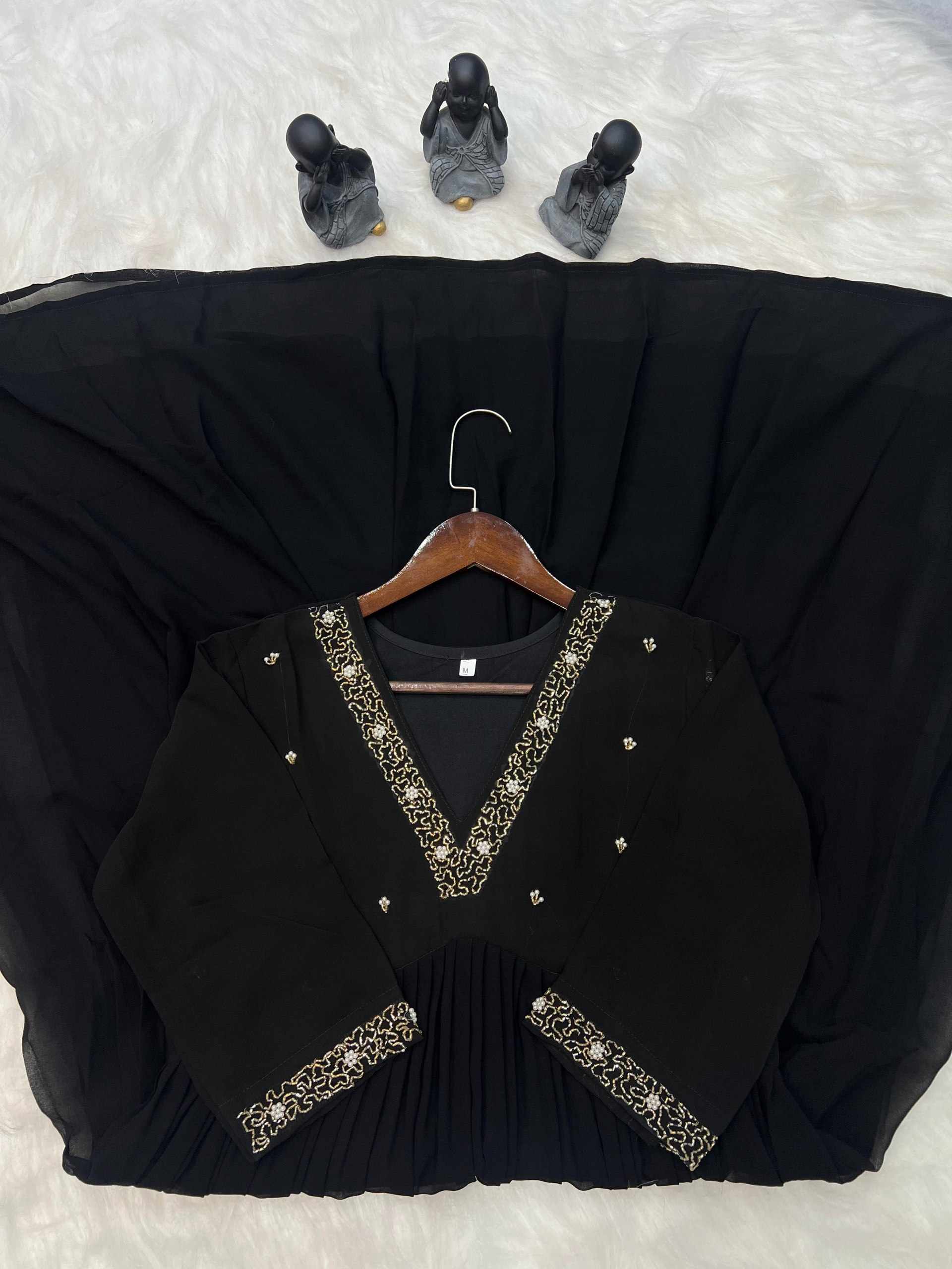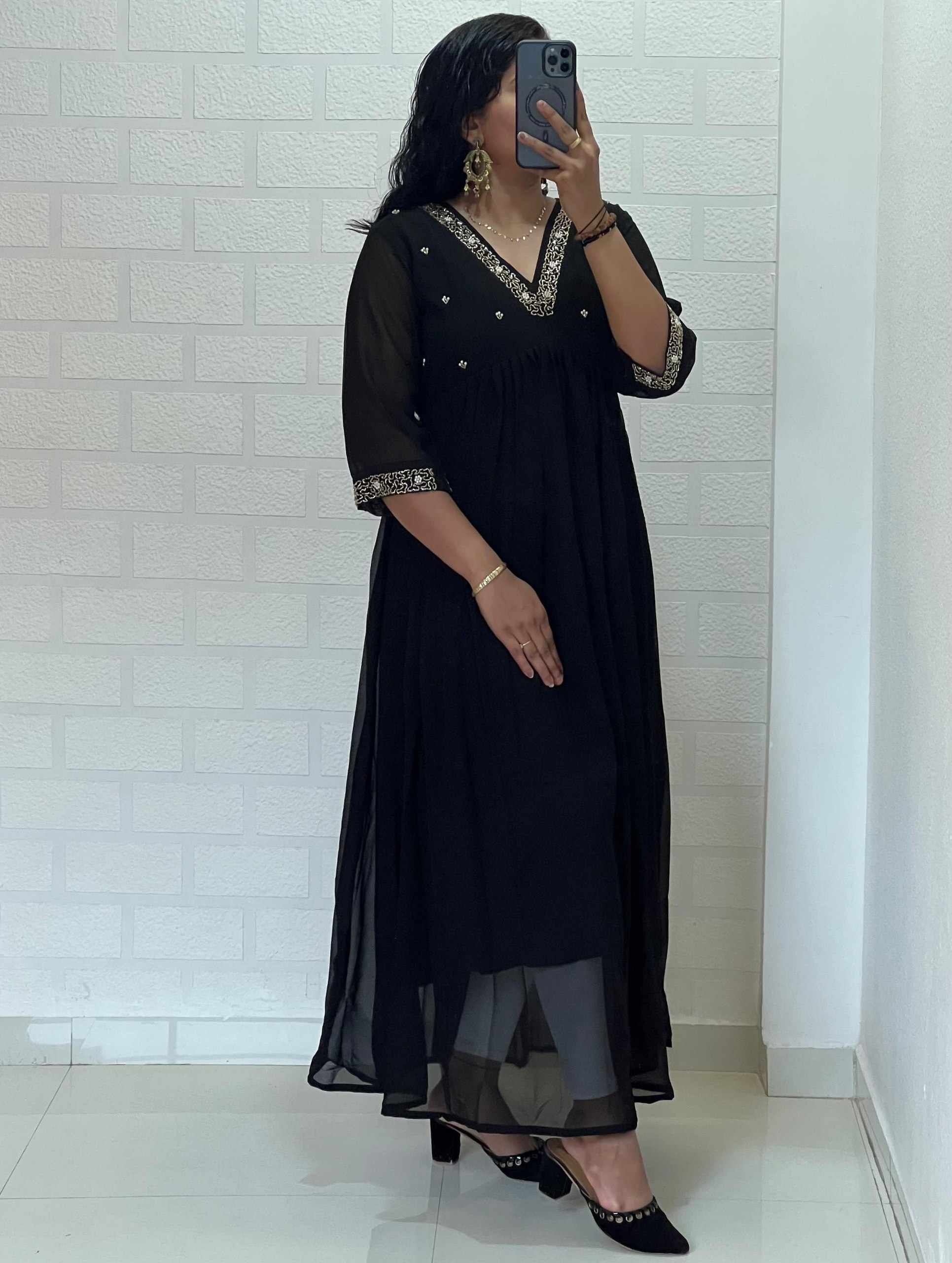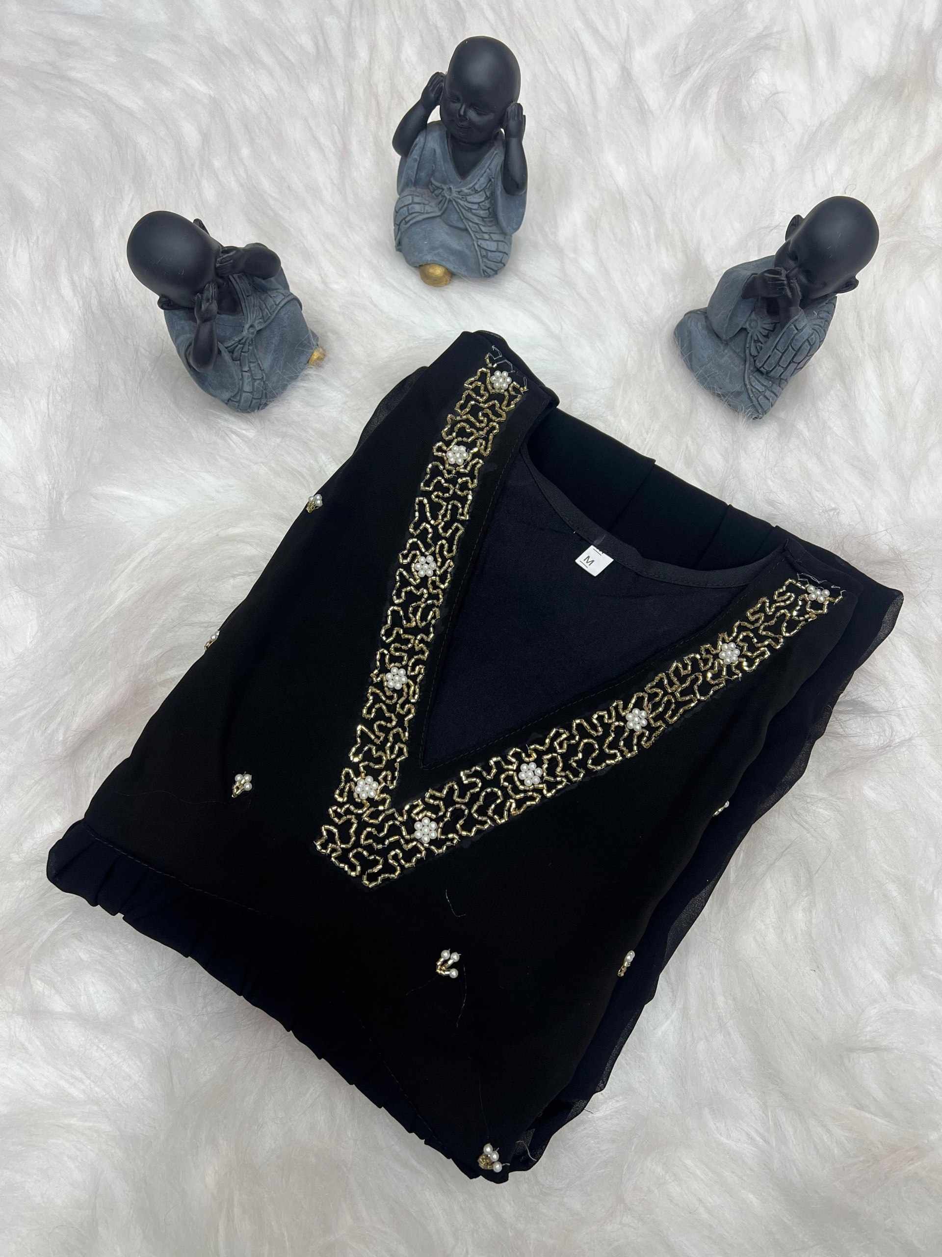 Home / WM10 BLACK BLOOMING GEORGETTE HANDWORK KURTI